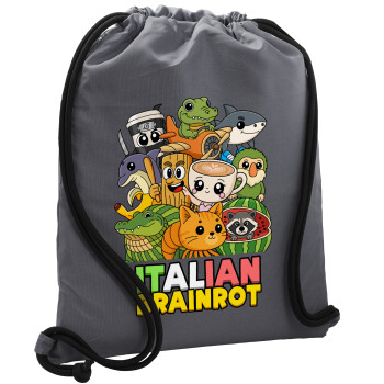 Italian Brainrot friends, Backpack pouch GYMBAG GREY, with pocket (40x48cm) & thick cords