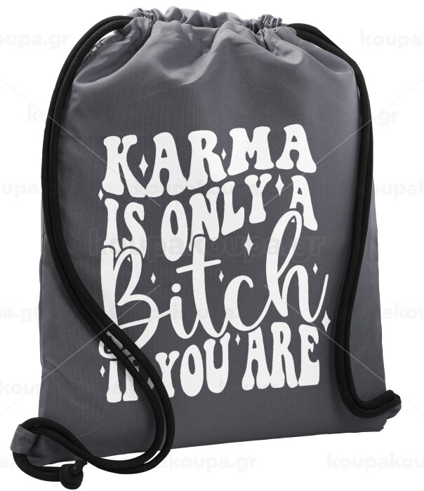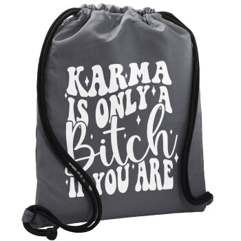 Karma is Only A Bitch if You Are, Backpack pouch GYMBAG GREY, with pocket (40x48cm) & thick cords