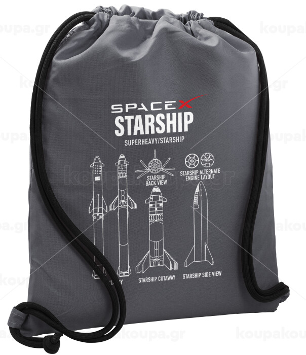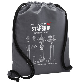 Space X, Backpack pouch GYMBAG GREY, with pocket (40x48cm) & thick cords