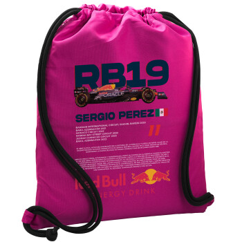 Redbull Sergio Perezi, Backpack pouch GYMBAG Fuchsia, with pocket (40x48cm) & thick cords