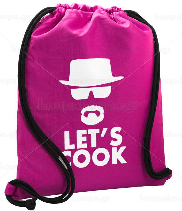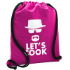Let's cook, Backpack pouch GYMBAG Fuchsia, with pocket (40x48cm) & thick cords