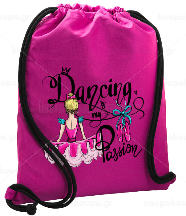 Dancing is my Passion, Backpack pouch GYMBAG Fuchsia, with pocket (40x48cm) & thick cords