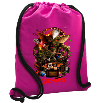 Gremlins, Backpack pouch GYMBAG Fuchsia, with pocket (40x48cm) & thick cords