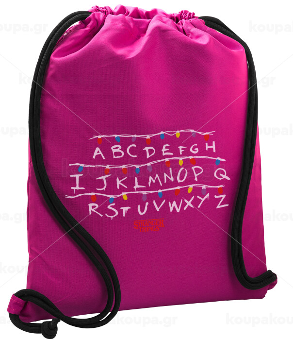Stranger Things ABC, Backpack pouch GYMBAG Fuchsia, with pocket (40x48cm) & thick cords