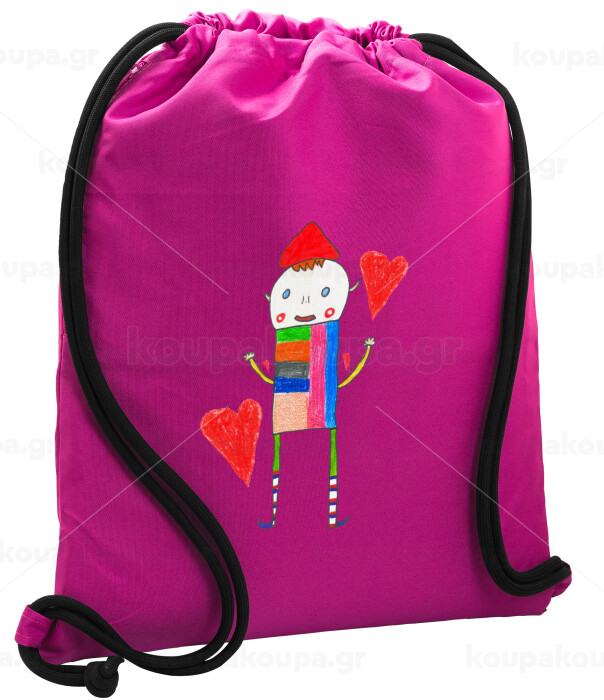 Ο Αλέξανδρος ζωγραφίζει την Αγάπη, Backpack pouch GYMBAG Fuchsia, with pocket (40x48cm) & thick cords