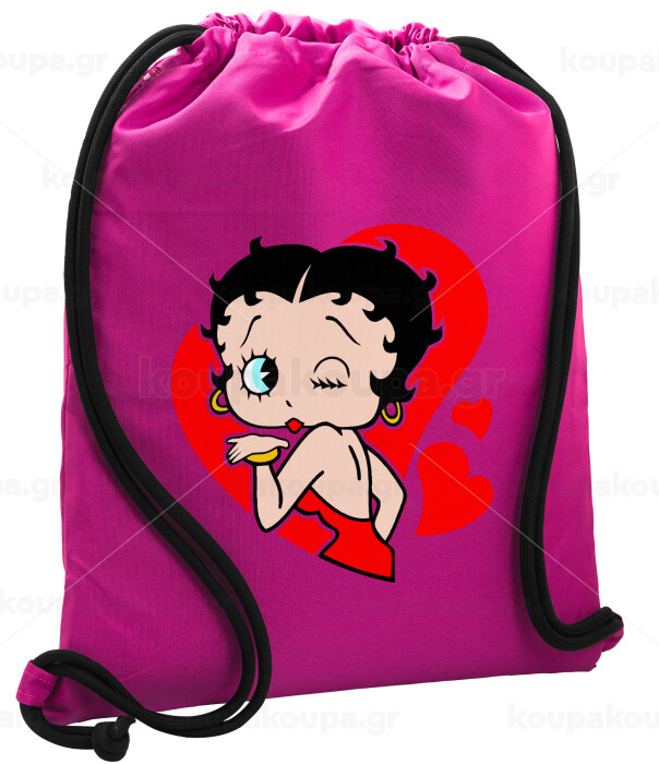 Betty Boop, Backpack pouch GYMBAG Fuchsia, with pocket (40x48cm) & thick cords