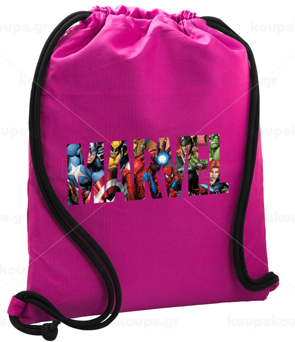 MARVEL characters, Backpack pouch GYMBAG Fuchsia, with pocket (40x48cm) & thick cords