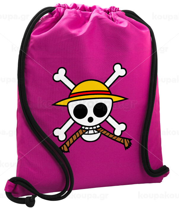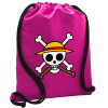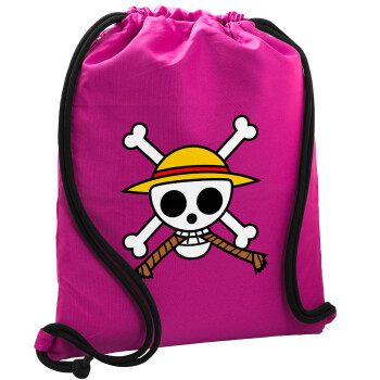 Onepiece skull, Backpack pouch GYMBAG Fuchsia, with pocket (40x48cm) & thick cords
