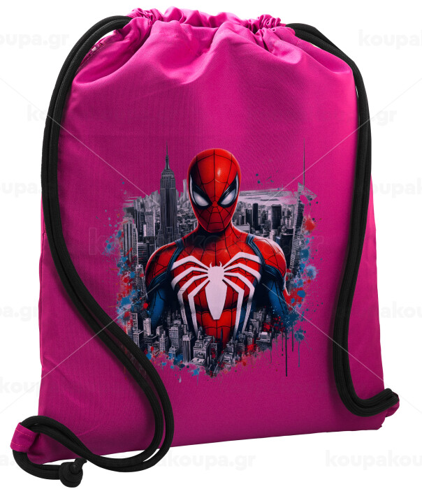 Spiderman City, Backpack pouch GYMBAG Fuchsia, with pocket (40x48cm) & thick cords
