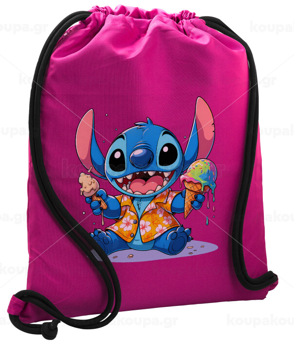 Stitch Ice cream, Backpack pouch GYMBAG Fuchsia, with pocket (40x48cm) & thick cords