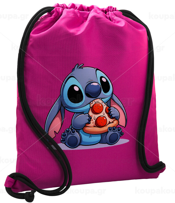 Stitch Pizza, Backpack pouch GYMBAG Fuchsia, with pocket (40x48cm) & thick cords