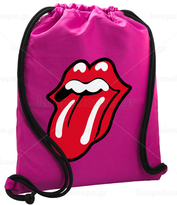 Rolling Stones Kiss, Backpack pouch GYMBAG Fuchsia, with pocket (40x48cm) & thick cords