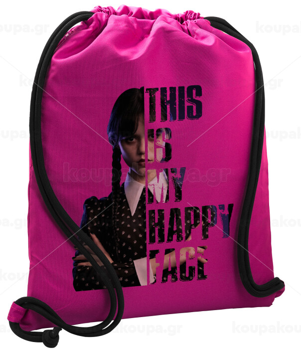 Wednesday, This is my happy face, Backpack pouch GYMBAG Fuchsia, with pocket (40x48cm) & thick cords