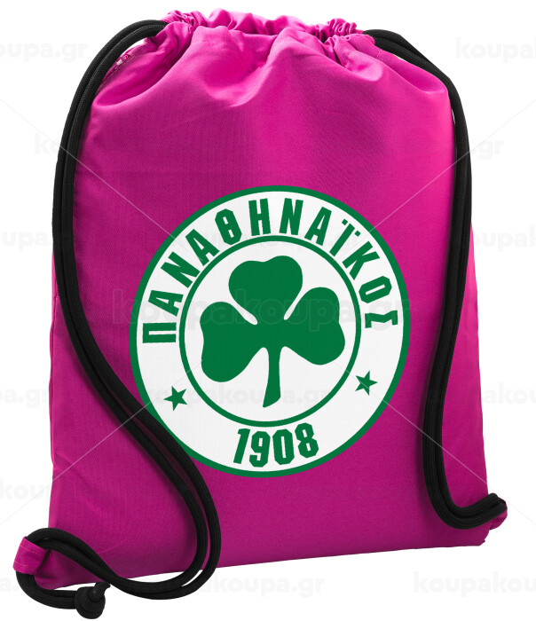 ΠΑΟ Παναθηναϊκός, Backpack pouch GYMBAG Fuchsia, with pocket (40x48cm) & thick cords