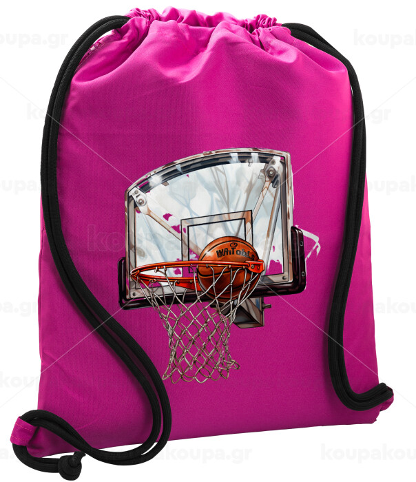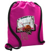 Basketball, Backpack pouch GYMBAG Fuchsia, with pocket (40x48cm) & thick cords
