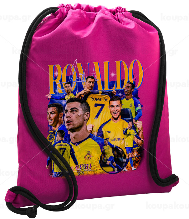 Cristiano Ronaldo Al Nassr, Backpack pouch GYMBAG Fuchsia, with pocket (40x48cm) & thick cords