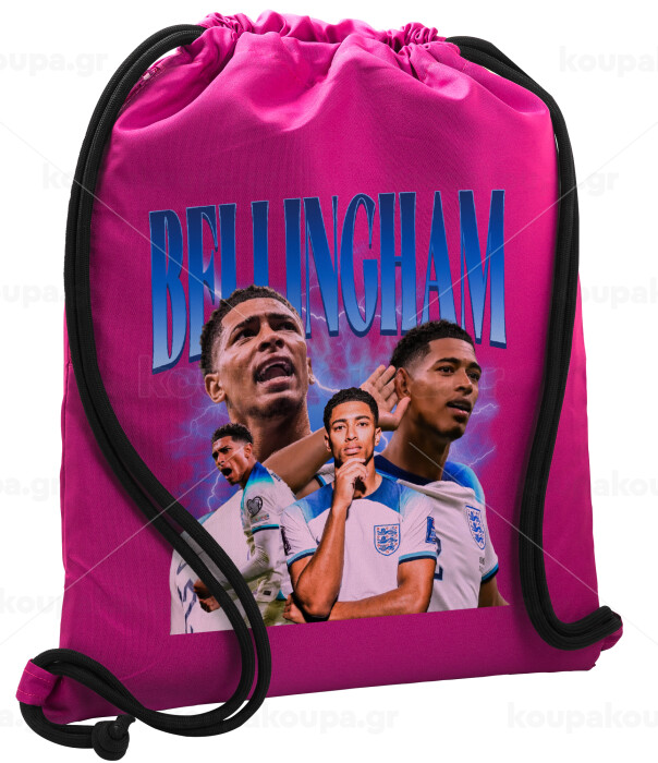 Jude Bellingham, Backpack pouch GYMBAG Fuchsia, with pocket (40x48cm) & thick cords