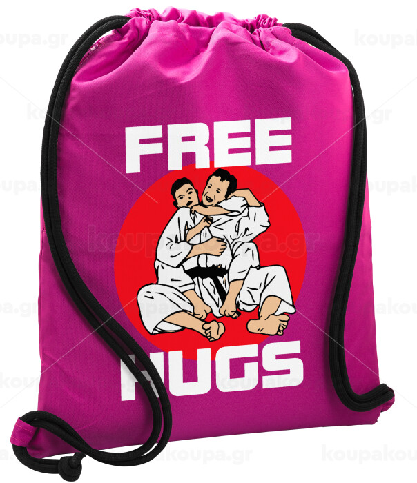 JUDO free hugs, Backpack pouch GYMBAG Fuchsia, with pocket (40x48cm) & thick cords