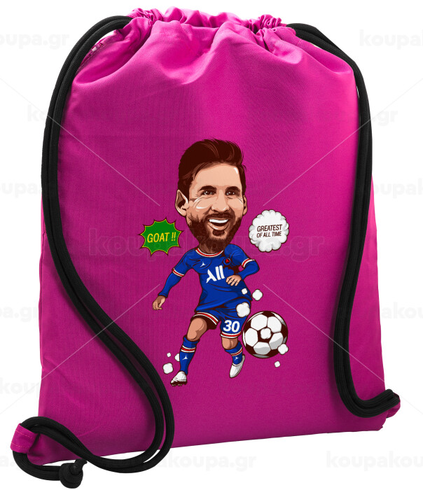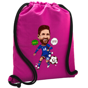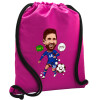 Lionel Messi drawing, Backpack pouch GYMBAG Fuchsia, with pocket (40x48cm) & thick cords
