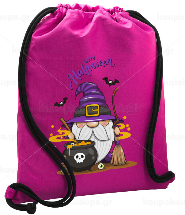 Happy Halloween (Χαλοουίν), Backpack pouch GYMBAG Fuchsia, with pocket (40x48cm) & thick cords