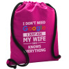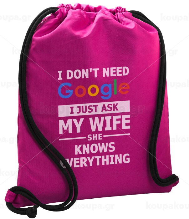 I don't need Google, just ask my WIFE, Backpack pouch GYMBAG Fuchsia, with pocket (40x48cm) & thick cords