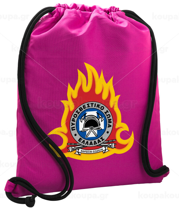 Πυροσβεστικό σώμα Ελλάδος σκούρο, Backpack pouch GYMBAG Fuchsia, with pocket (40x48cm) & thick cords