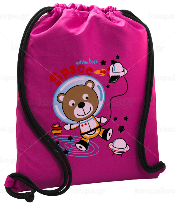 Kids Space, Backpack pouch GYMBAG Fuchsia, with pocket (40x48cm) & thick cords