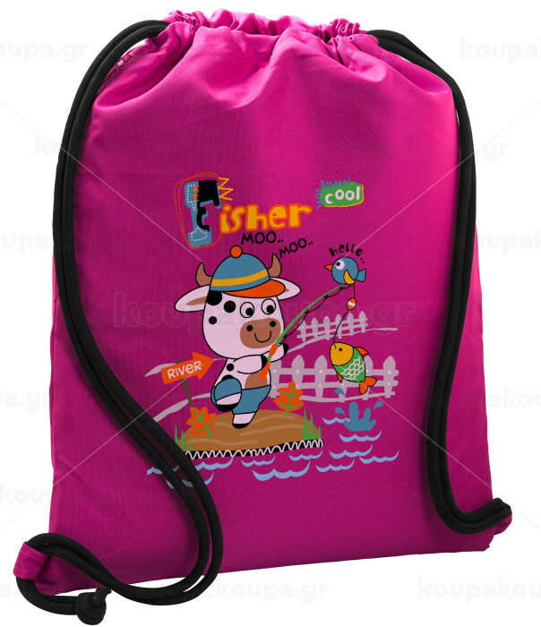 Kids Fisherman, Backpack pouch GYMBAG Fuchsia, with pocket (40x48cm) & thick cords
