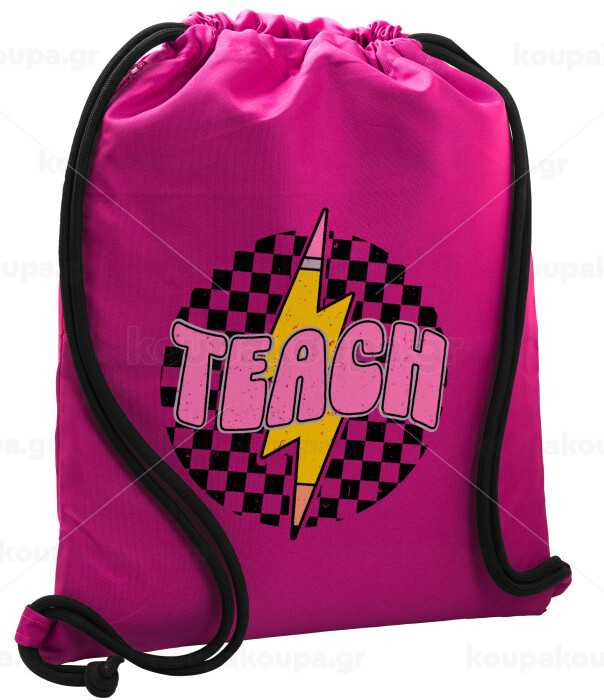 Teach, Backpack pouch GYMBAG Fuchsia, with pocket (40x48cm) & thick cords
