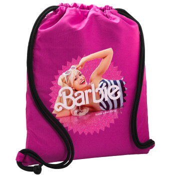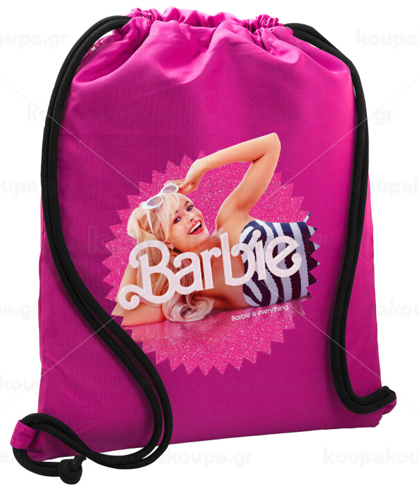Barbie is everything, Backpack pouch GYMBAG Fuchsia, with pocket (40x48cm) & thick cords