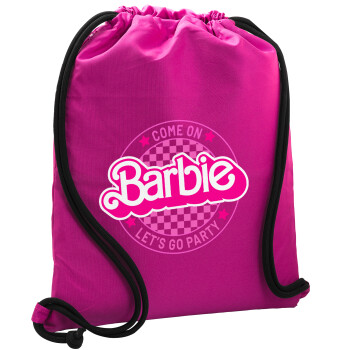 Come On Barbie Lets Go Party , Backpack pouch GYMBAG Fuchsia, with pocket (40x48cm) & thick cords