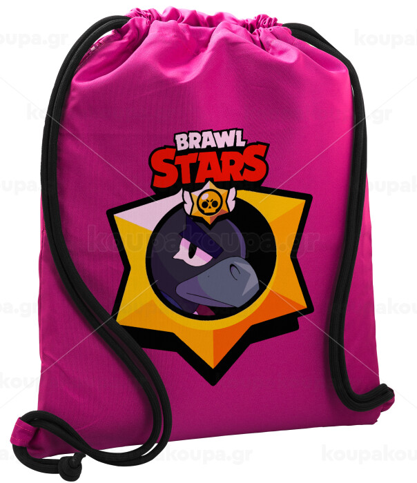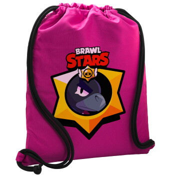Brawl Stars Crow, Backpack pouch GYMBAG Fuchsia, with pocket (40x48cm) & thick cords