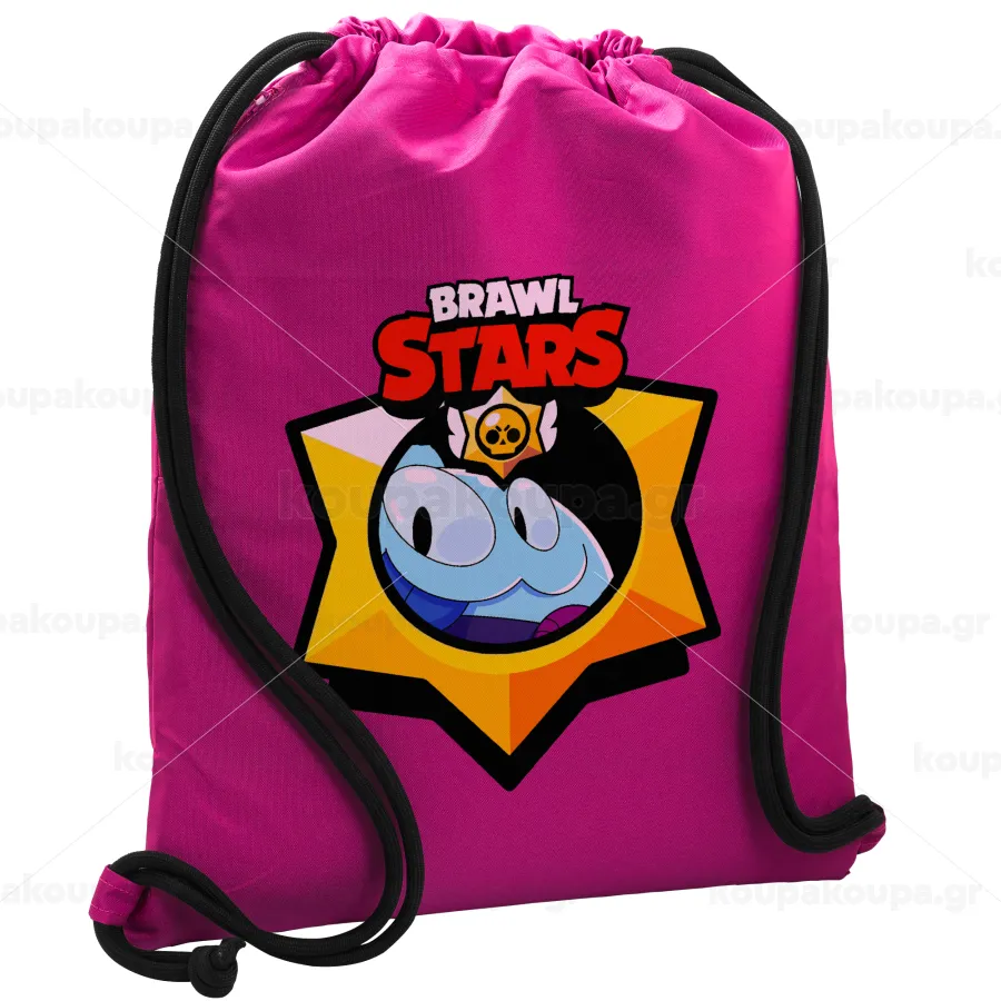 Brawl Stars Squeak, Backpack pouch GYMBAG Fuchsia, with pocket (40x48cm) & thick cords