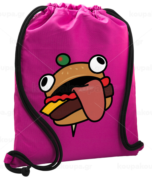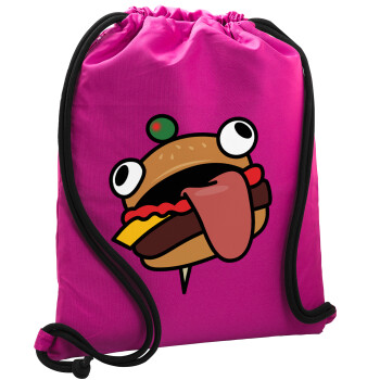 Fortnite Durr Burger, Backpack pouch GYMBAG Fuchsia, with pocket (40x48cm) & thick cords