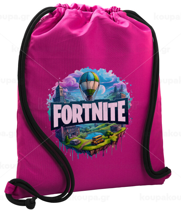 Fortnite land, Backpack pouch GYMBAG Fuchsia, with pocket (40x48cm) & thick cords