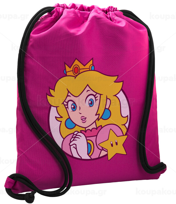 Princess Peach, Backpack pouch GYMBAG Fuchsia, with pocket (40x48cm) & thick cords