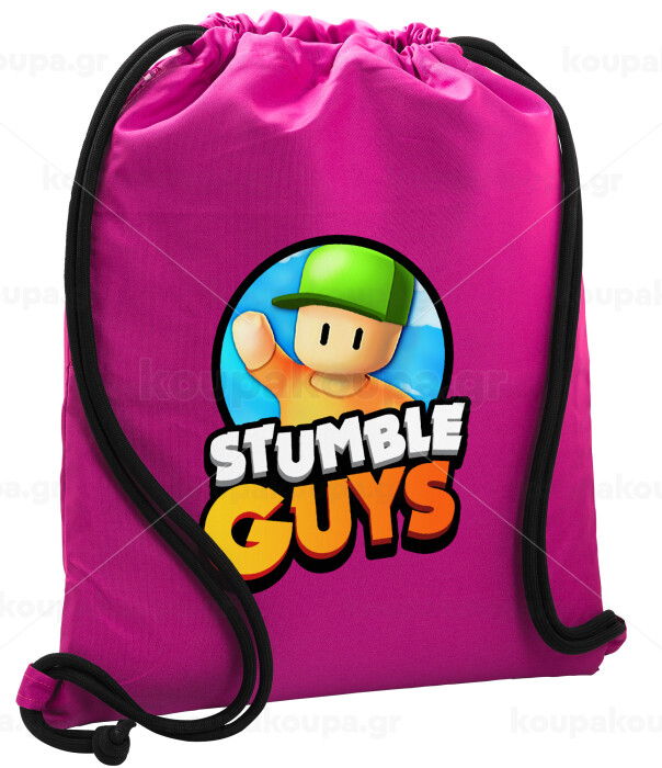 Stumble Guys, Backpack pouch GYMBAG Fuchsia, with pocket (40x48cm) & thick cords
