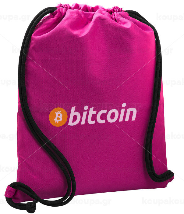 Bitcoin Crypto, Backpack pouch GYMBAG Fuchsia, with pocket (40x48cm) & thick cords