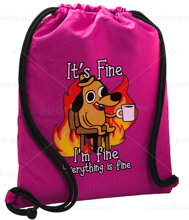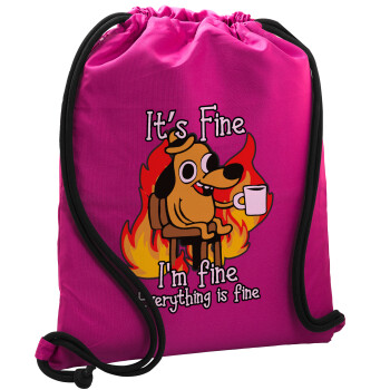 It's Fine I'm Fine Everything Is Fine, Backpack pouch GYMBAG Fuchsia, with pocket (40x48cm) & thick cords