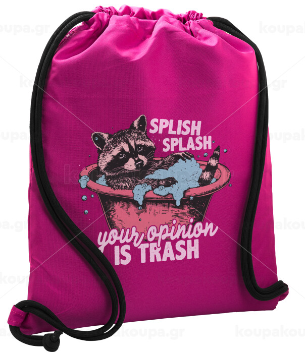 Splish splash your opinion is trash, Backpack pouch GYMBAG Fuchsia, with pocket (40x48cm) & thick cords