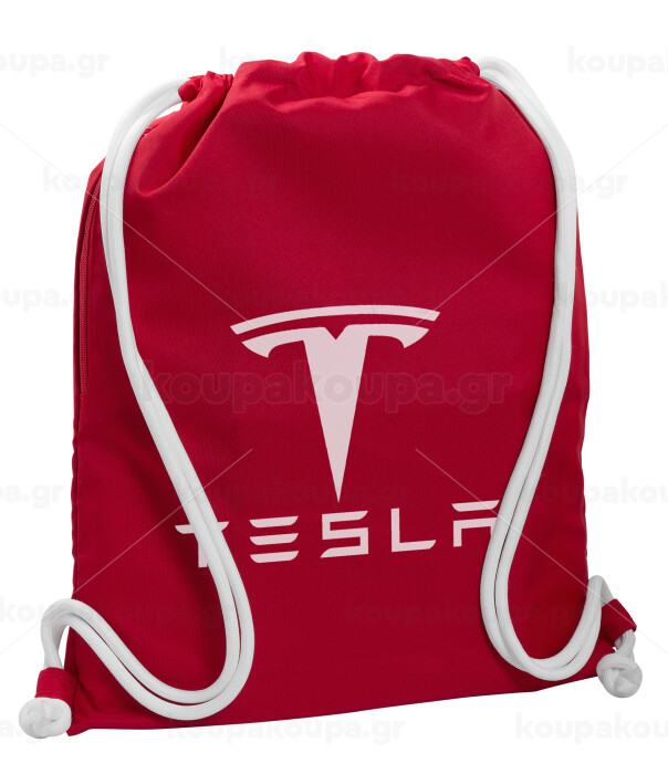 Tesla motors, Backpack pouch GYMBAG Red, with pocket (40x48cm) & thick cords