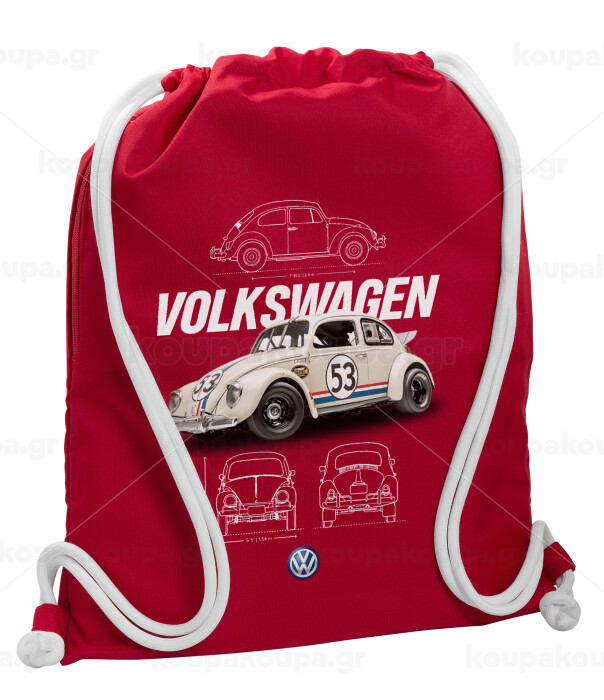 Volkswagen Beetle, Backpack pouch GYMBAG Red, with pocket (40x48cm) & thick cords