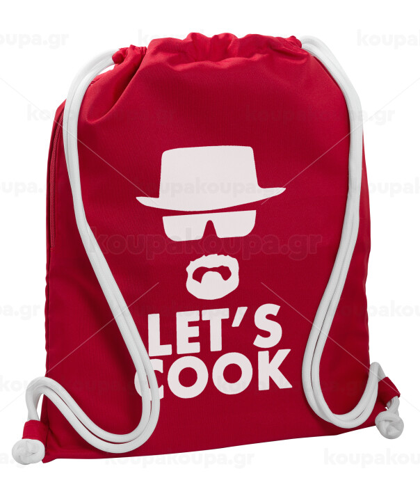 Let's cook, Backpack pouch GYMBAG Red, with pocket (40x48cm) & thick cords