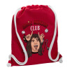 Eddie Munson, Hellfire CLub, Stranger Things, Backpack pouch GYMBAG Red, with pocket (40x48cm) & thick cords