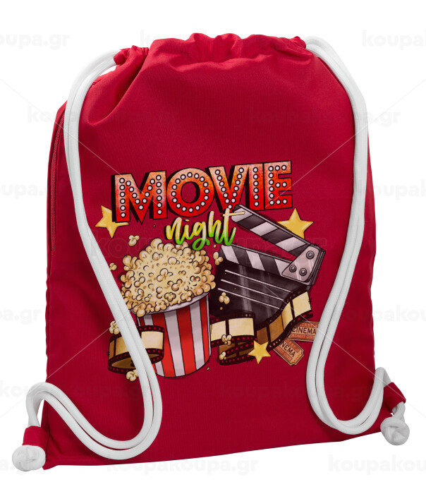 Movie night, Backpack pouch GYMBAG Red, with pocket (40x48cm) & thick cords