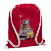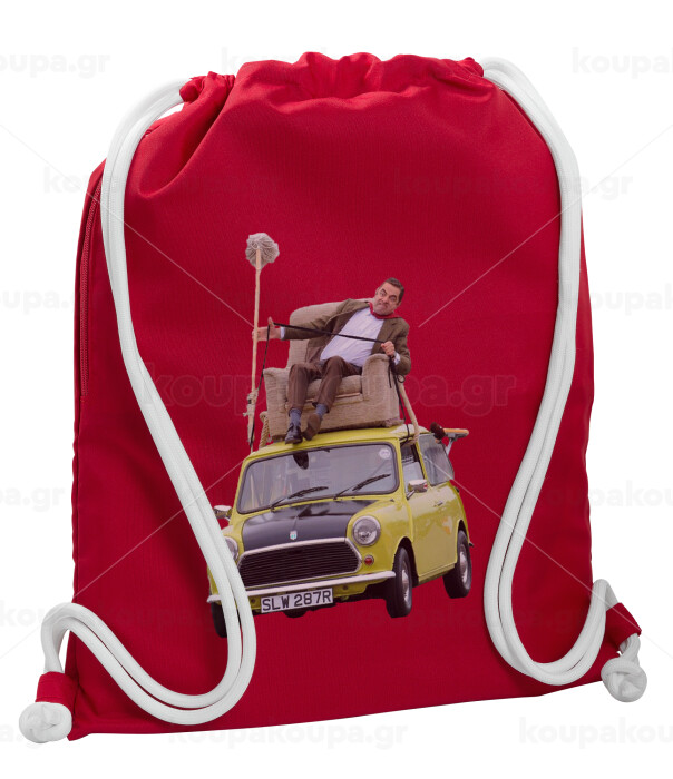 Mr. Bean mini 1000, Backpack pouch GYMBAG Red, with pocket (40x48cm) & thick cords