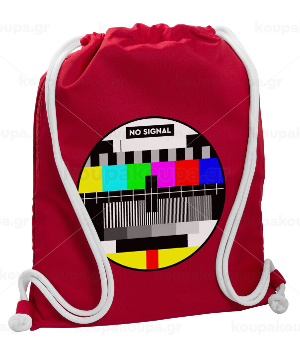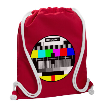 No signal, Backpack pouch GYMBAG Red, with pocket (40x48cm) & thick cords