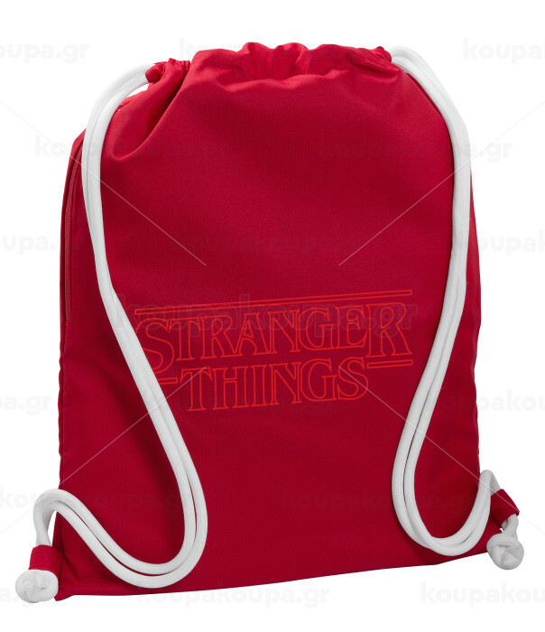 Stranger Things Logo, Backpack pouch GYMBAG Red, with pocket (40x48cm) & thick cords