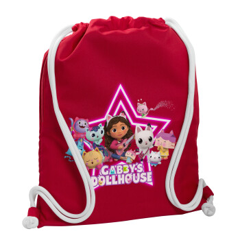 Gabby Dollhouse, Backpack pouch GYMBAG Red, with pocket (40x48cm) & thick cords