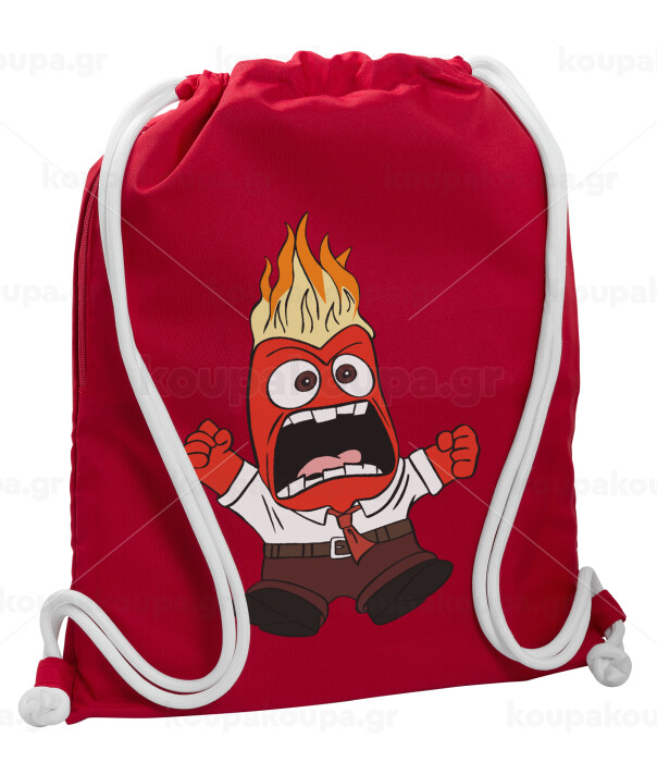 Inside Out Angry, Backpack pouch GYMBAG Red, with pocket (40x48cm) & thick cords